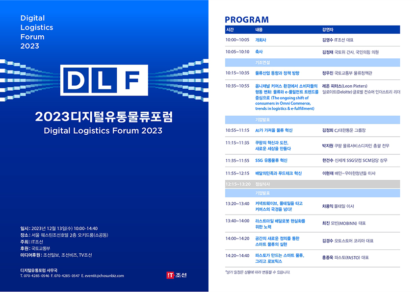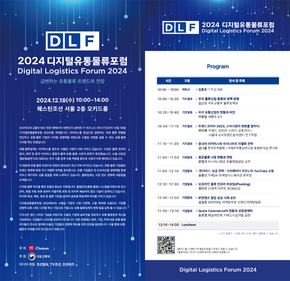 IT조선은 디지털유통물류포럼을 개최해 유통·물류업계의 디지털 현황을 짚어보고 미래 트렌드를 미리 확인하는 자리를 마련합니다.
