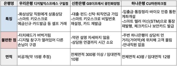 디지털 점포가 익숙하지 않은 고객을 위해 최소 1명의 안내직원을 배치해둔 타행과 달리, 이곳에는 아무도 없다. 만약 불편사항이 생기거나 업무 진행에 어려움을 겪는다면 편의점 직원의 안내를 받아야 한다. 편의점 알바생이 은행 업무를 얼마나 도와줄지는 미지수.