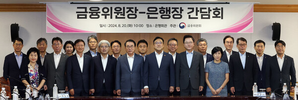 김병환 금융위원장은 20일 오전 서울 명동 은행회관에서 19개 은행장과 취임 후 첫 간담회를 열고 금융안정과 지속가능한 경제성장을 위한 은행의 역할을 논의했다.