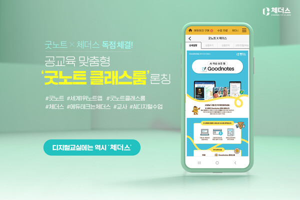테크빌교육이 운영하는 에듀테크 마켓 플레이스 ‘체더스’가 글로벌 디지털 필기 솔루션 굿노트(Goodnotes)와 협력해 공교육 맞춤형 ‘굿노트 클래스룸’을 론칭했다.
