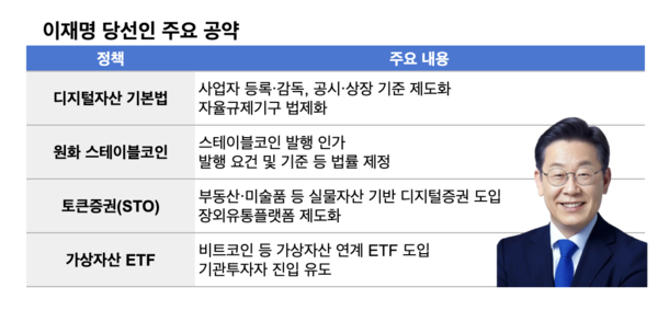 3일 이재명 더불어민주당 후보의 당선으로 디지털자산 산업의 제도화에 속도가 붙을지 주목된다. 후보 시절부터 가상자산 진흥을 핵심 공약으로 내세운 만큼, 제도권 편입과 시장 활성화를 위한 입법과 행정 정비가 본격화될 것이란 기대가 나온다.
