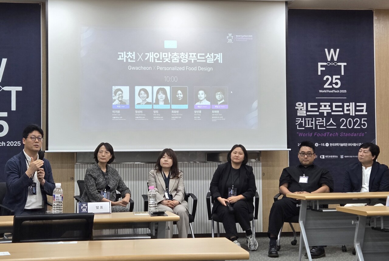 월드푸드테크 2025 컨퍼런스에서 개인 맞춤형 식품 설계의 현재와 미래를 조망하는 세션이 14일 진행됐다. '과천 X 개인맞춤형푸드설계' 세션에서는 전문가들이 한자리에 모여 생애주기와 질병, 유전자 정보를 기반으로 한 맞춤형 식품 제조 및 서비스 기술의 발전 방향을 논의했다.